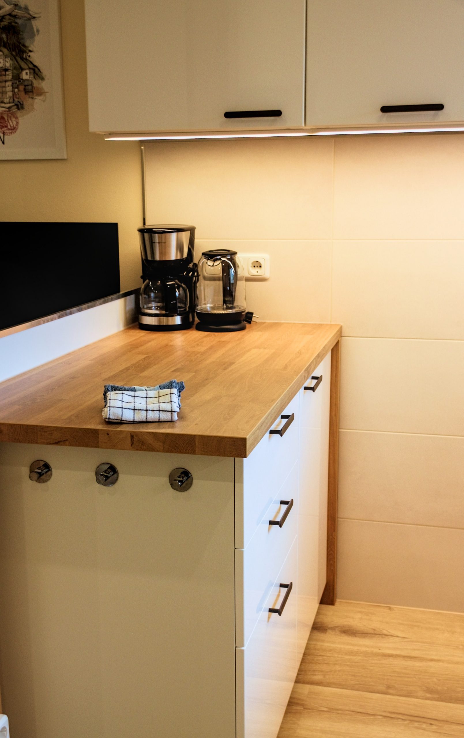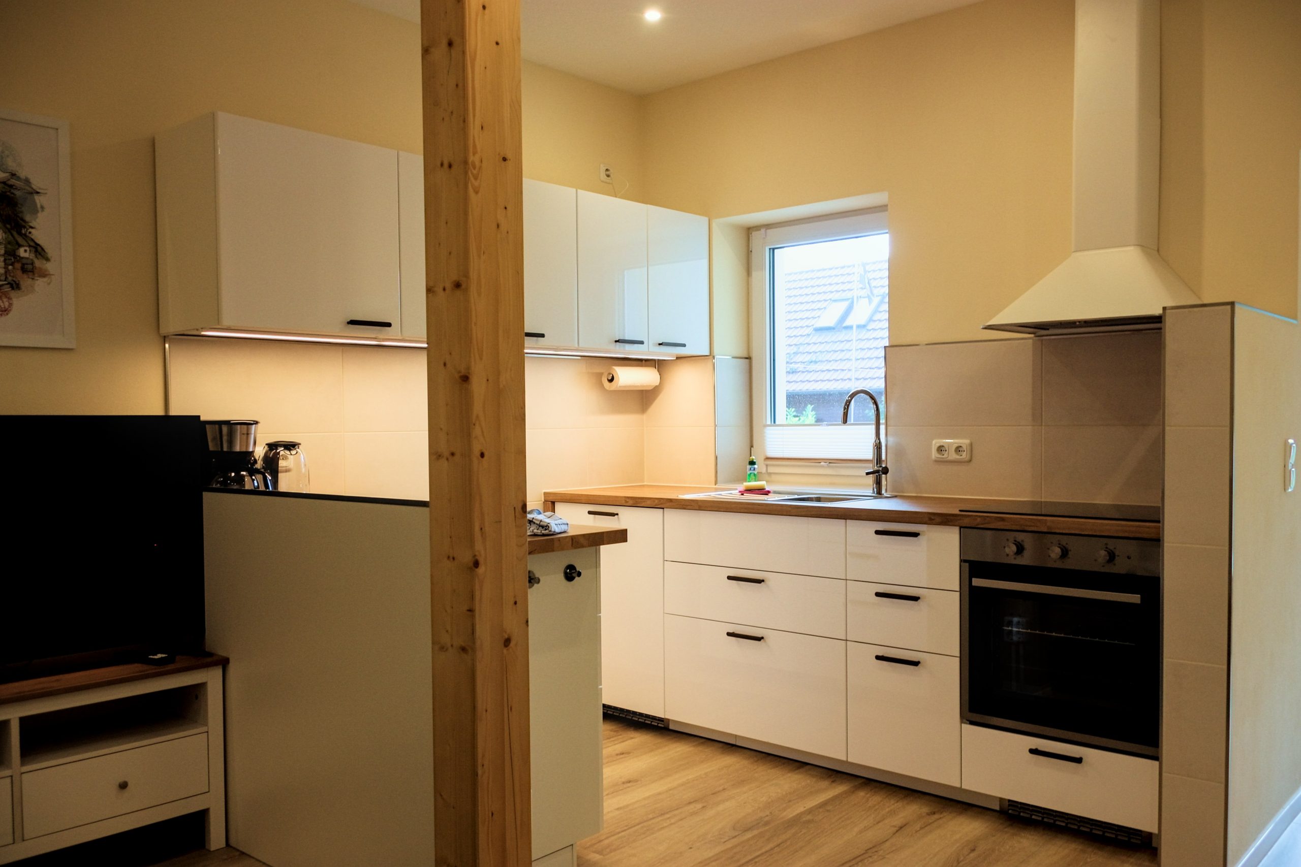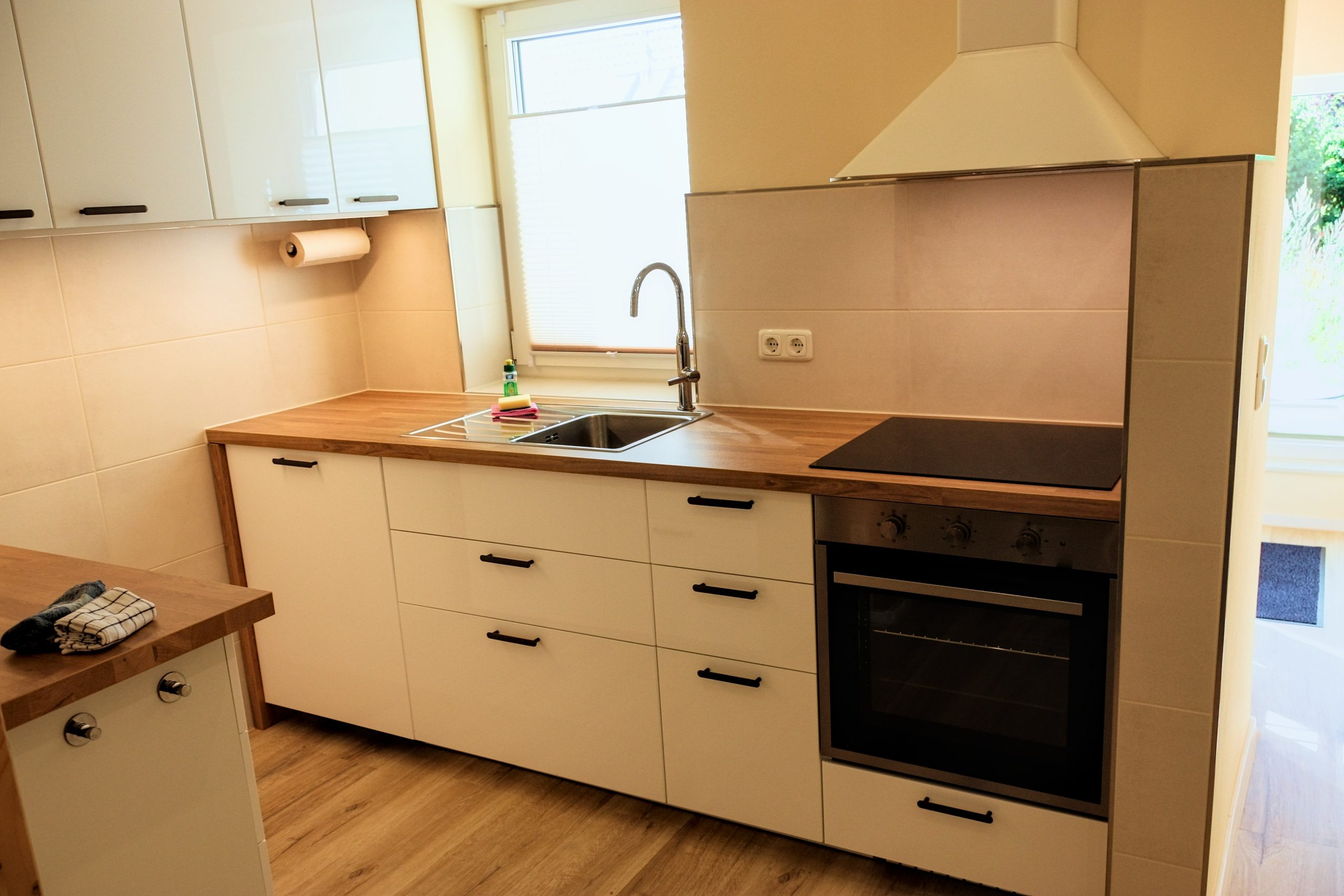 - voll ausgestattete Küche mit Induktionsherd, Backofen, Geschirrspüler, Mikrowelle, Wasserkocher, Kaffeemaschine und Toaster