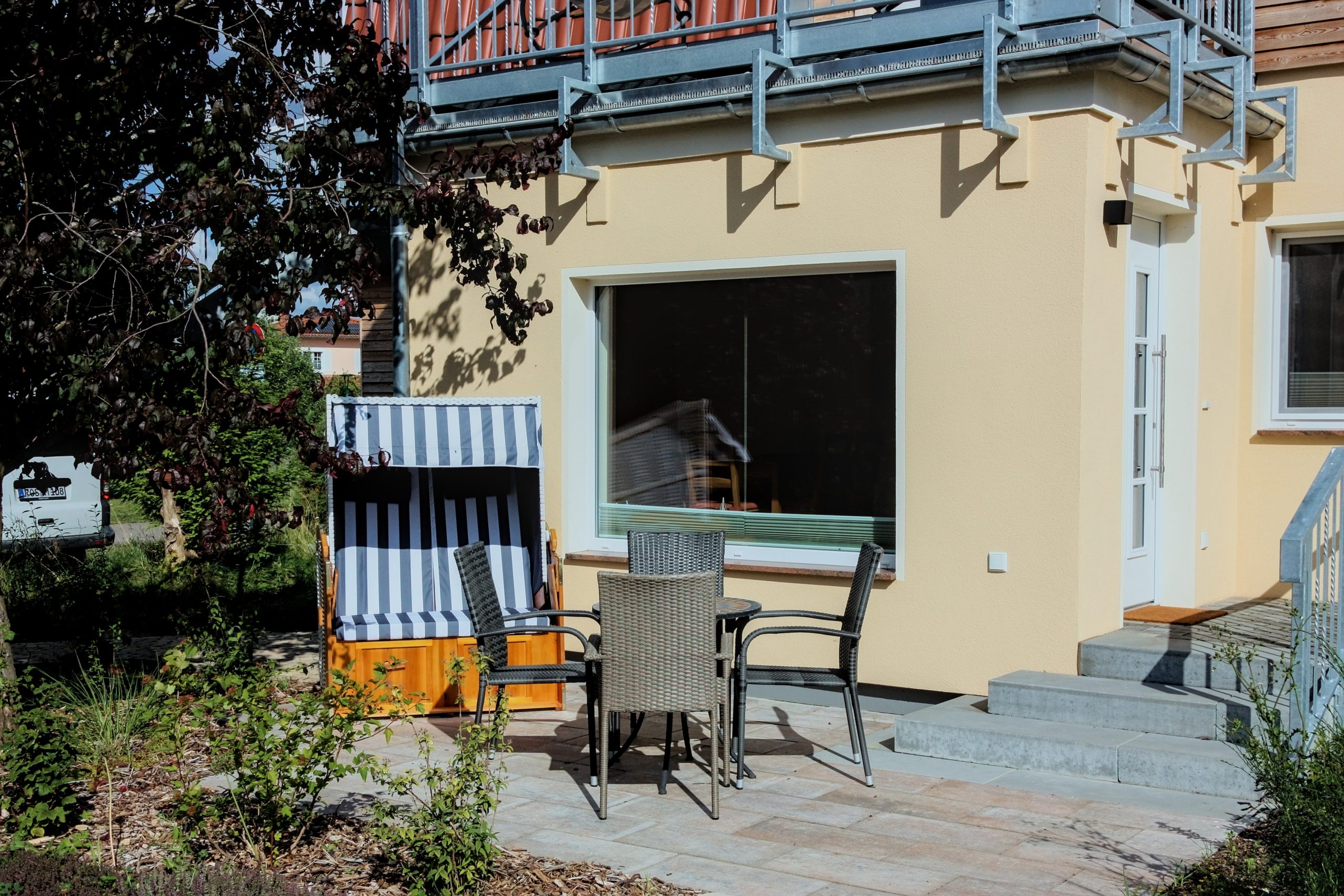 - eigene Terrasse mit Tisch, Stühlen und Strandkorb